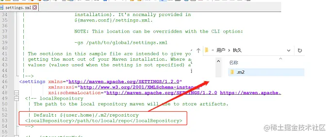 当前目录位置为登录用户名所在目录下的.m2文件夹中