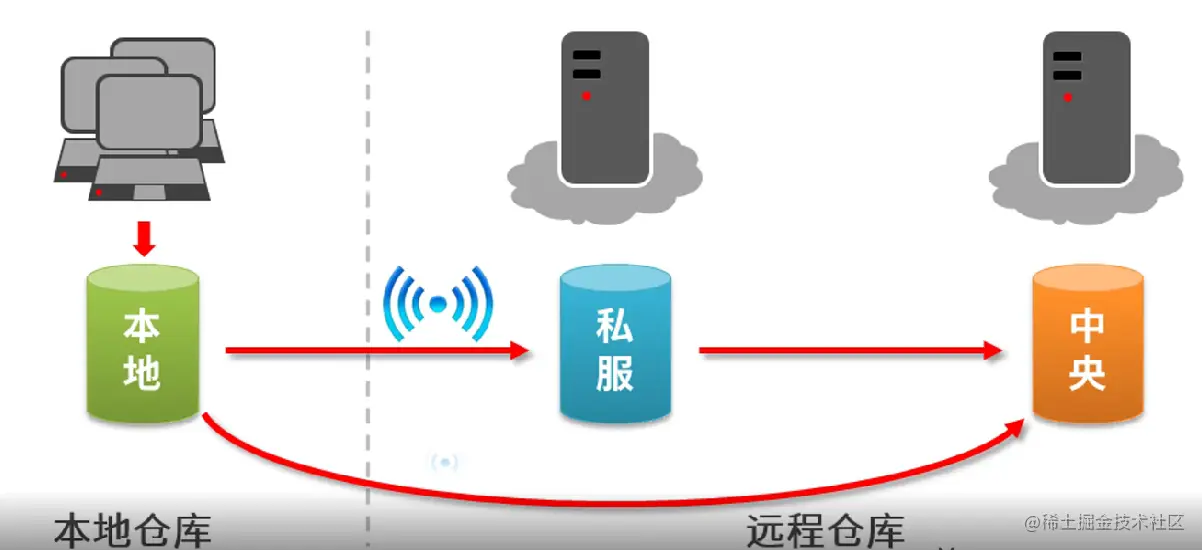 - 私服:部门/公司范围内存储资源的仓库,从中央仓库中获取资源