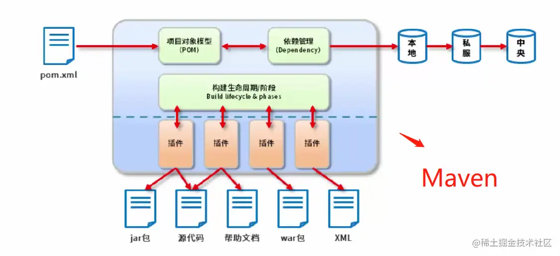 一个项目就是一个对象,通过写pom.xml配置文件,Maven就可以知道项目信息,Maven管理资源要用到依赖管理,依赖管理用到的资源来自本地(本地仓库),依赖管理的东西最终来自中央仓库。Maven提供了多个插件,一个插件可以对应很多构建过程,一个构建过程也可以有很多插件。