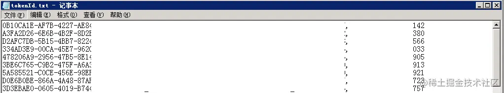 生成的tokenId.txt文件,逗号分隔同一行的tokenId和卡号cardNumber两列数据