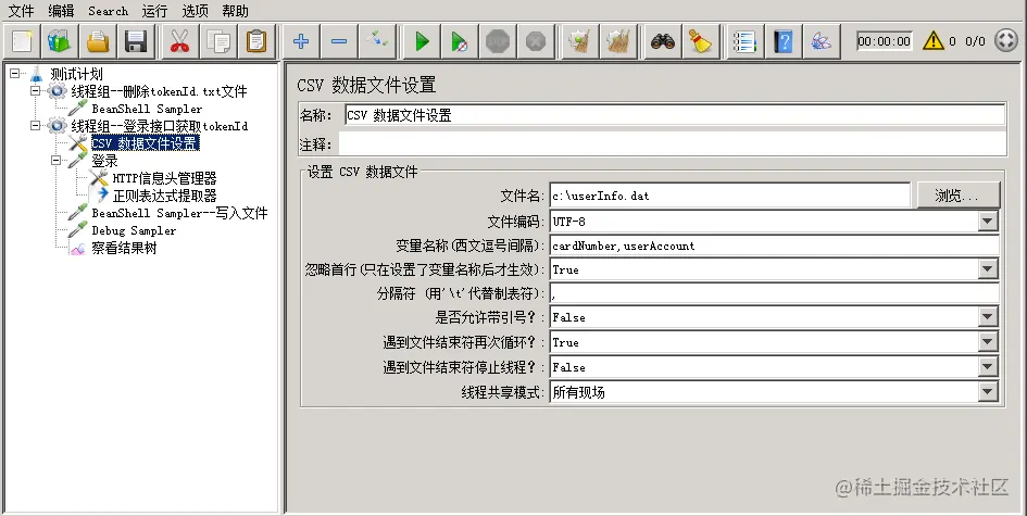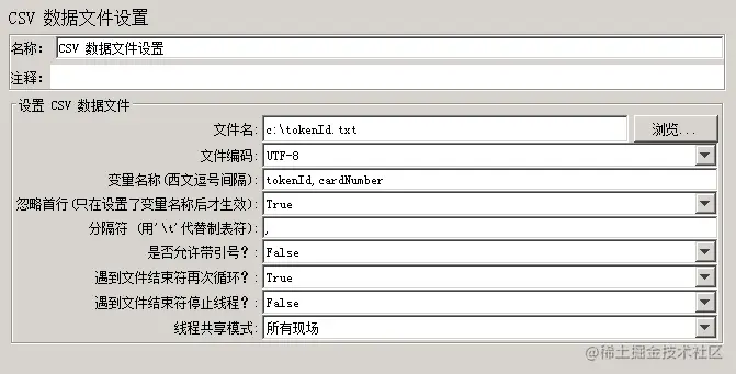 这样,被压测接口就可以用上面生成的关联参数文件tokenId.txt了,下面变量名称和生成的tokenId.txt文件中变量顺序要一致