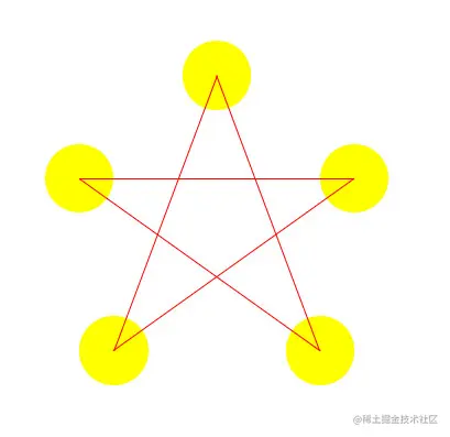 最后给出完整的样例代码,连接了 5 个圆形的中心点绘制出一个五角星:
