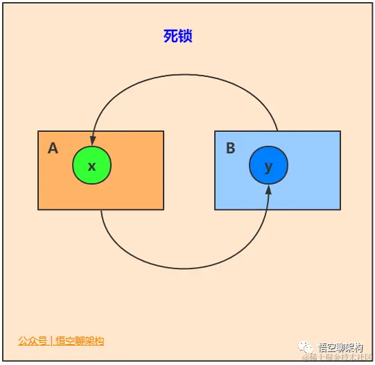 死锁是一种现象: 如线程A持有资源x,线程B持有资源y,线程A等待线程B释放资源y,线程B等待线程A释放资源x,两个线程都不释放自己持有的资源,则两个线程都获取不到对方的资源,就会造成死锁。