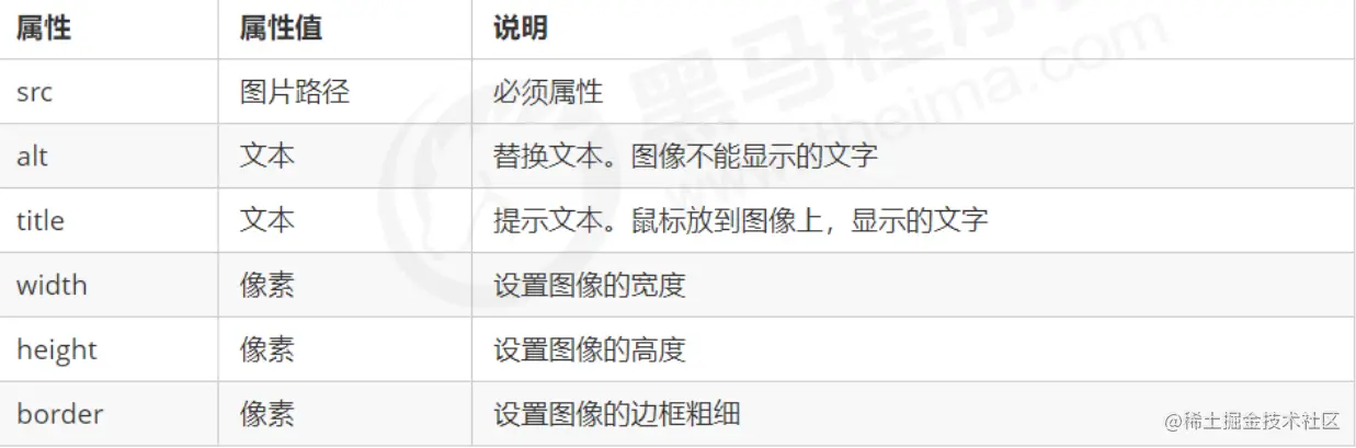 - 图像标签可以拥有多个属性,必须写在标签名的后面。