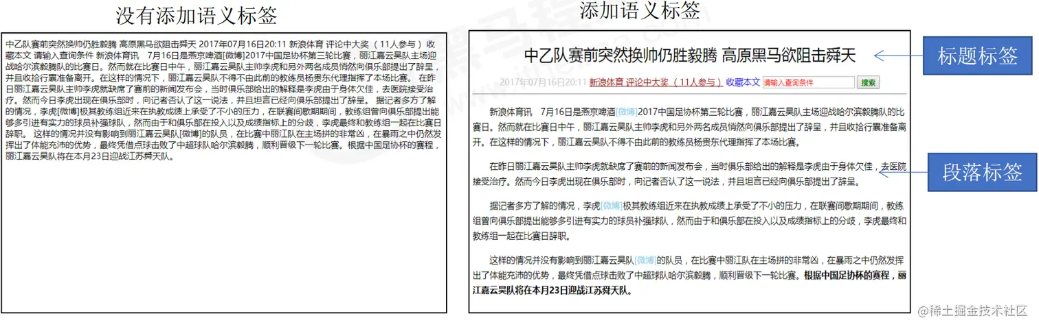 没有语义化标签与有语义标签: