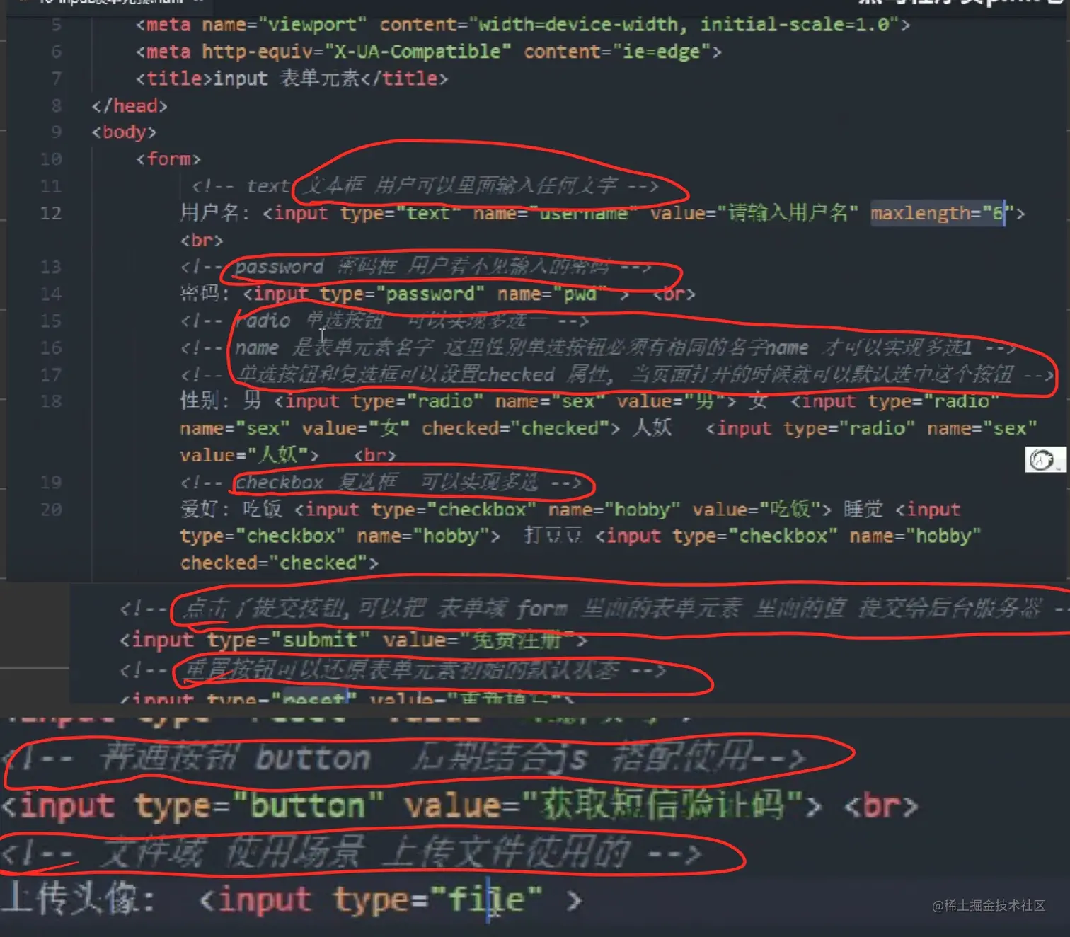 <textarea>标签。 - 在表单元素中,