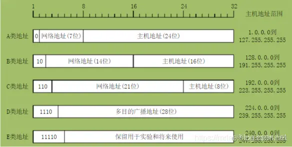 IP地址分为A,B,C,D,E五类,每个ip由两部分组成(网络号和主机号),其中A类分配给政府机关使用,B类地址给大中型企业使用,C类地址给个人使用。这三种是主要的,D类用于组播,E类用于实验,各类可容纳的地址数目不同。