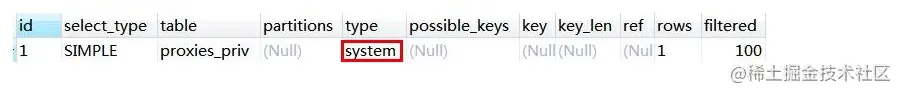 EXPLAIN SELECT * FROM mysql.proxies_priv;
