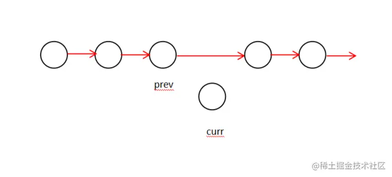 如上图所示,当在遍历过程中删除了curr节点时,那么通过它找到下一个节点是不可能了。所以这个时候我们必须借助操作curr之前还在链表上的上一个节点,即上图的prev节点,通过其next成员,找到需要迭代处理的下一个节点。所以,迭代过程中需要记录prev、curr这2个节点的位置信息。迭代过程实际就是调整prev和curr的过程,对于不删除的情况,prev和curr依次向后移动,删除操作时,只移动curr。