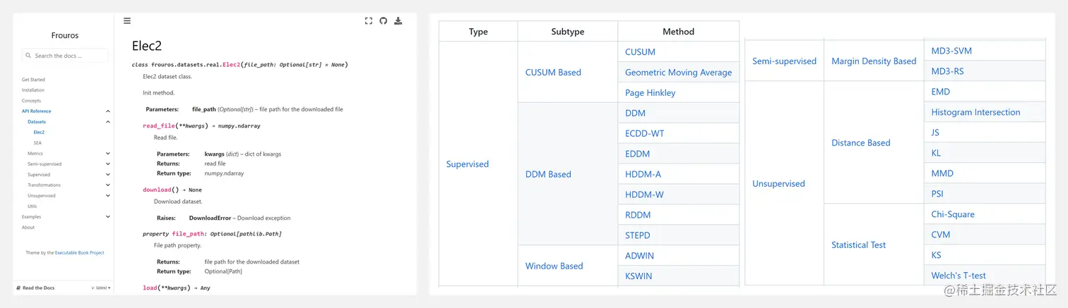 Frouros 是一个用于机器学习漂移问题检测的 Python 库。Frouros提供了经典与较新的漂移检测算法的组合,包括监督和非监督以及一些半监督算法。工具库具备很好的特性: