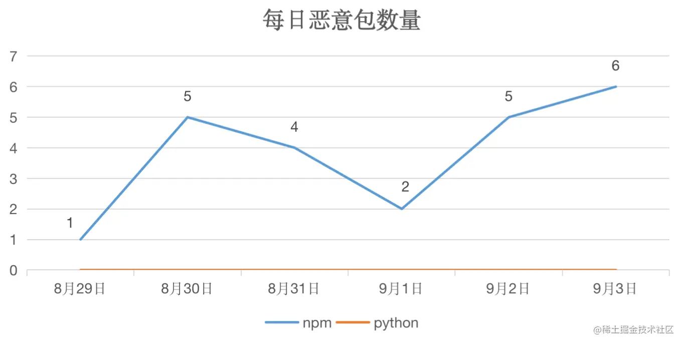 OSCS针对 NPM 仓库监测的恶意组件数量如下所示。