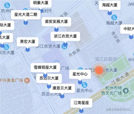 2.每个写字楼的标记点出现顺序由内而外依次出现(1km->2km->3km->4km)并实现动画效果