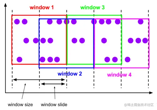 二、滑动窗口(Sliding Windows)与滚动窗口类似,滑动窗口的大小也是固定的。区别在于,窗口之间并不是首尾相接的,而是可以“错开”一定的位置。如果看作一个窗口的运动,那么就像是向前小步“滑动”一样。定义滑动窗口的参数有两个:除去窗口大小(window size)之外,还有一个滑动步长(window slide),代表窗口计算的频率。