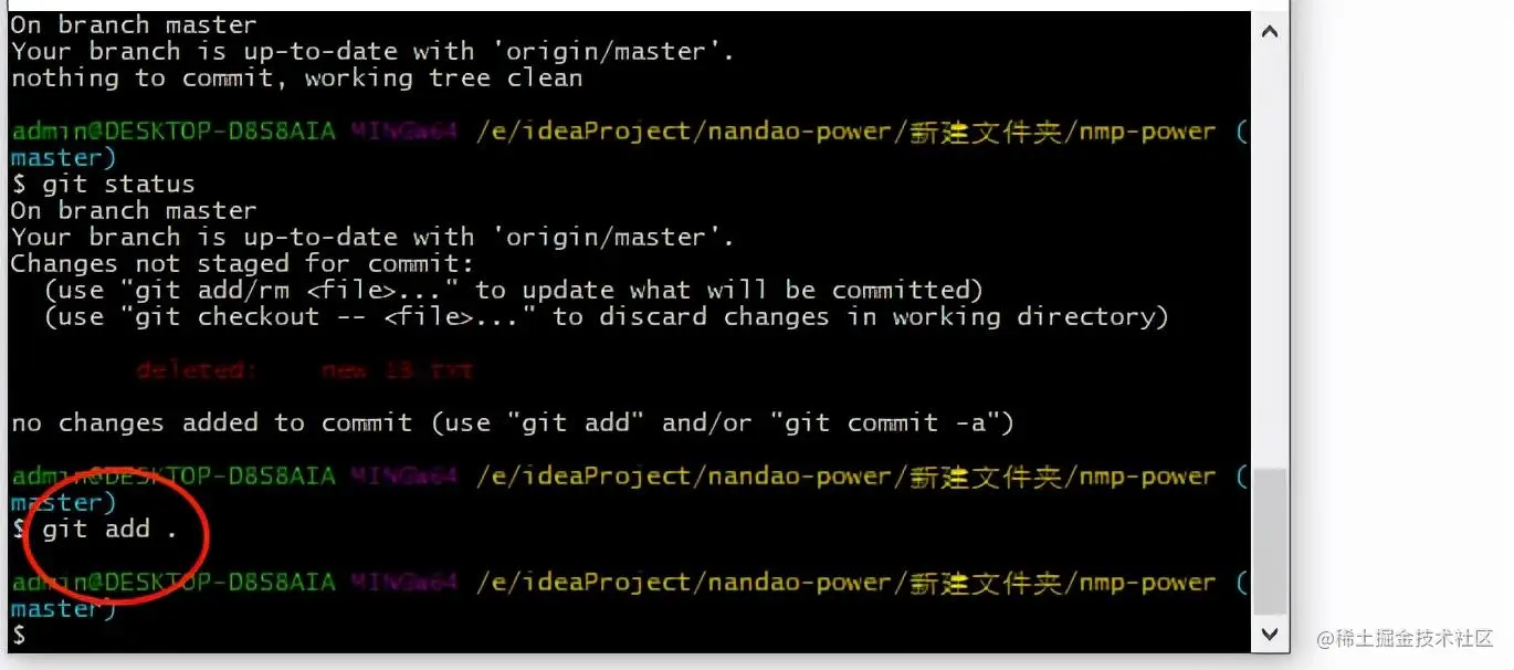 3、此时执行 git add . 命令: