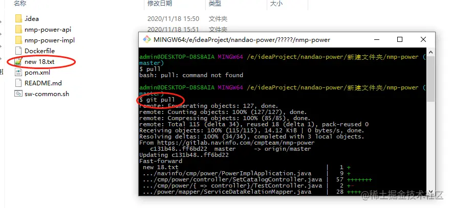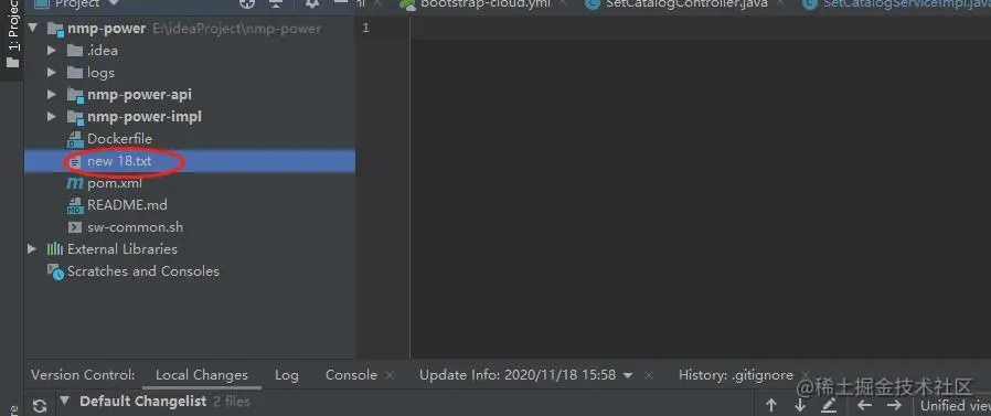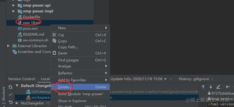 项目原型,删除远程git仓库上 new 18.txt,,但是idea 本地仓库保存: