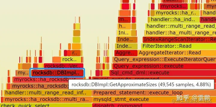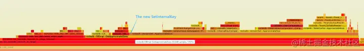 在 ToplingDB 中,性能墙最终总会收敛到 RocksDB,但是,要兼容复用 RocksDB 生态,这是必须付出的代价,哪怕是 ApproximateSize 这样的 API,也不例外。我们在火焰图中发现: