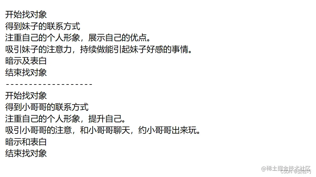 找男朋友和找女朋友都是四个步骤,这是它们相同的地方,相同的地方放在模板里。