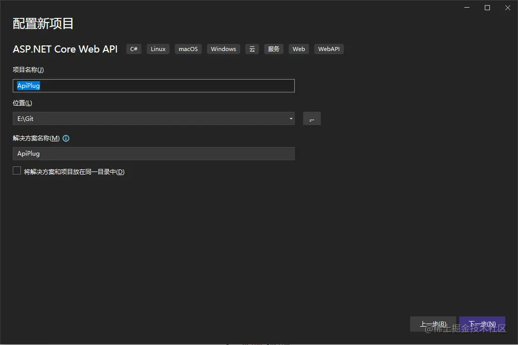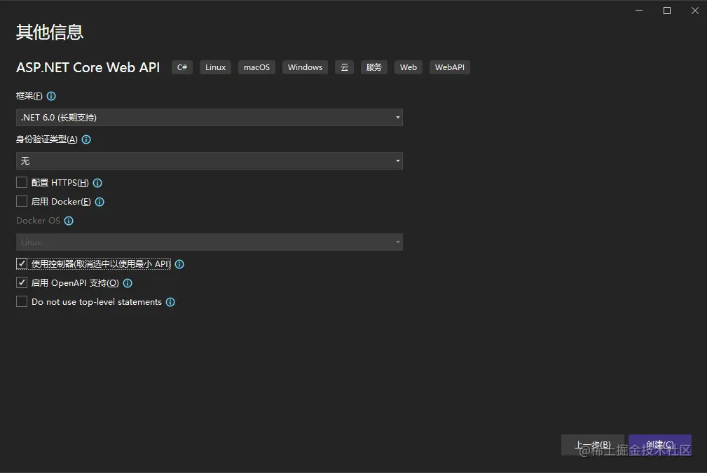我们先创建一个WebApi的项目,就使用目前最新的.NET 6框架来演示