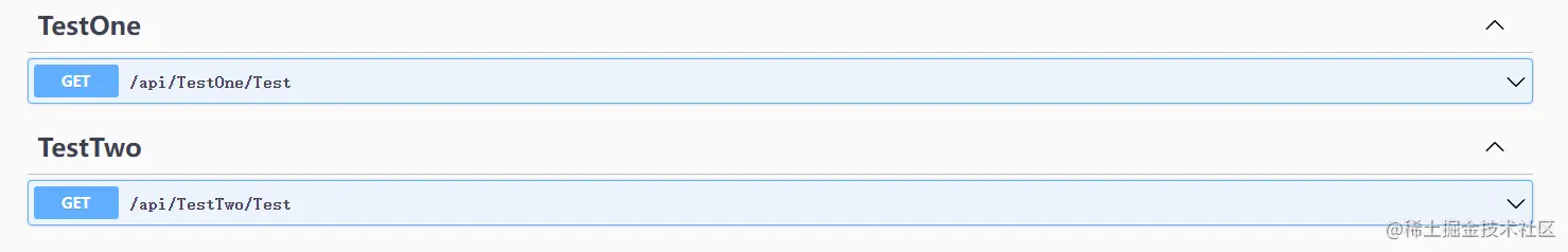 我们先手动添加下引用看看能否正常显示新的接口,可以看到原有的TestOne和TestTwo都显示在Swagger中了