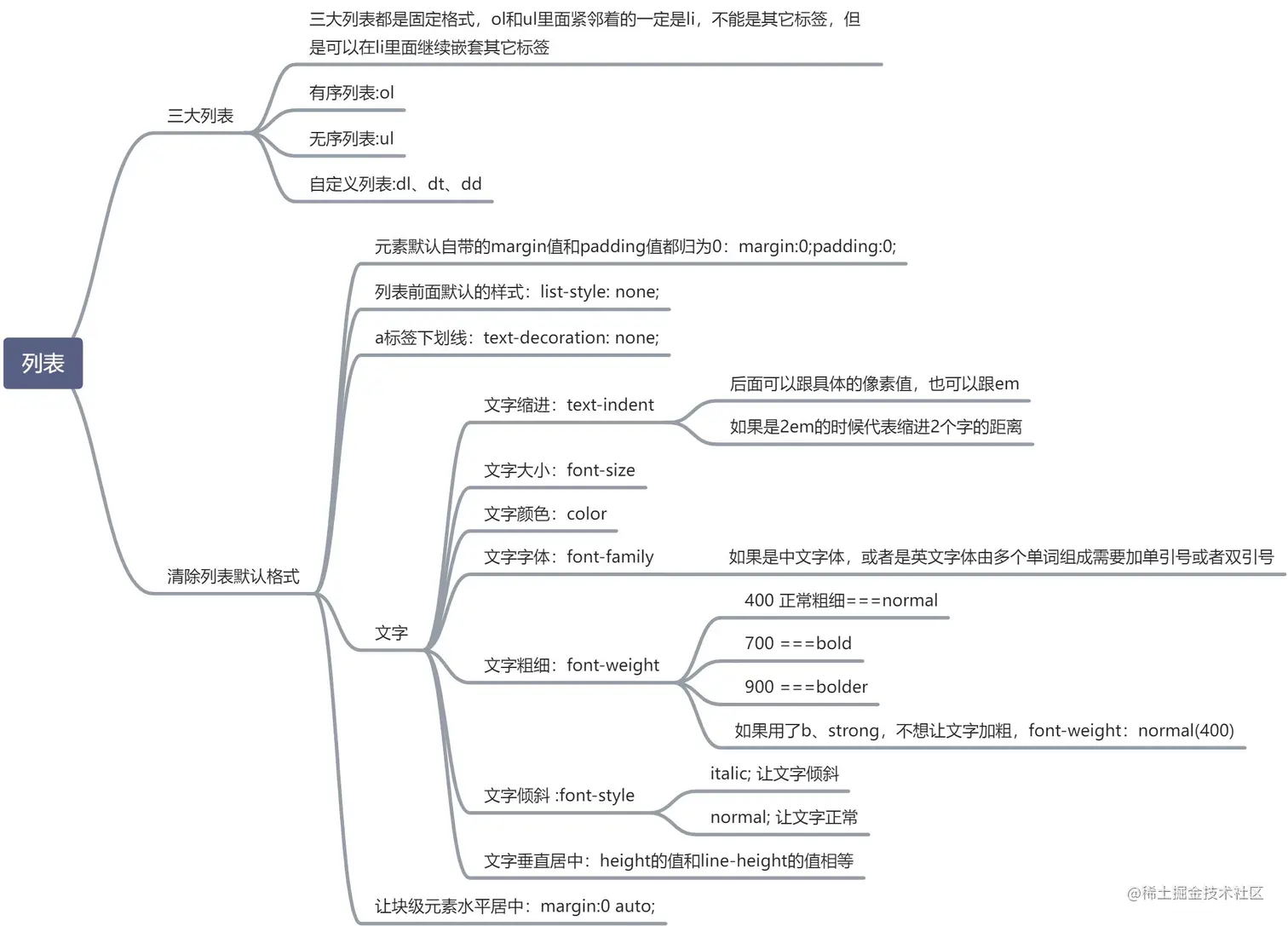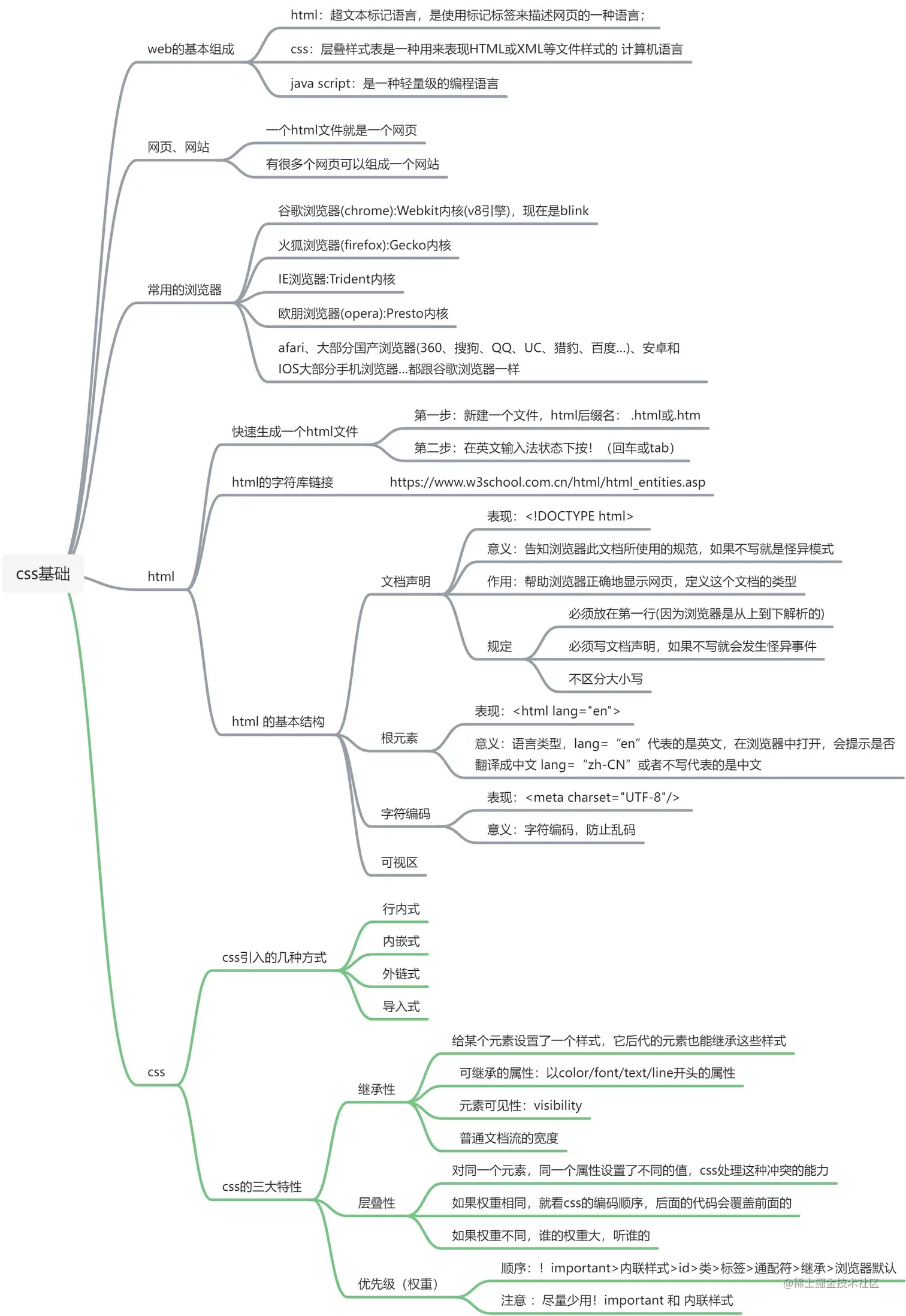 想自学css吗?11张思维导图带你轻松拿捏css 东方淼淼 2022-09-06 347 阅读1分钟 “我报名参加金石计划1期挑战——瓜分10万奖池,这是我的第5篇文章,点击查看活动详情” 1.基础 css基础详细戳这里 2.标签 标签详细可以戳这里还有这里这里 3.列表 列表详细可以戳这里 4.表单元素 表单元素详细可以戳这里 5.背景 6.浮动 7.盒模型 盒模型详细可以戳这里 8.定位 定位详细可以戳这里 9.transform transform详细可以戳这里 10.h5 h5详细可以戳这里 11.flex布局 flex布局详细可以戳这里 css常用知识点总结 css常用知识点总结戳这里 css常见面试题 css常见面试题戳这里 案例练习戳这里 相关专栏戳这里