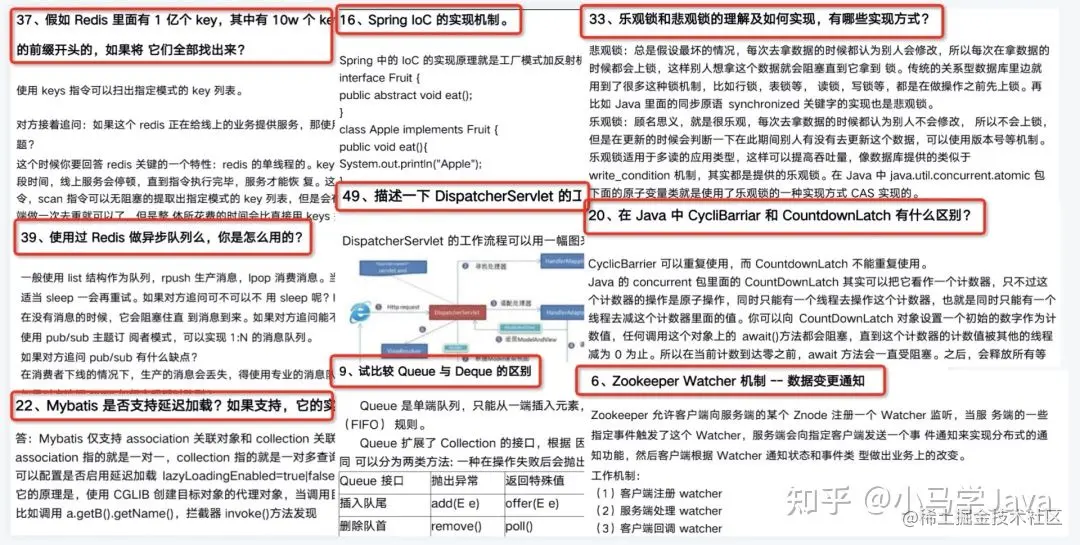 核心知识点全覆盖JVM 39 道、Java I/O 15 道、Kafka 16 道、MySQL 32 道、Netty 15 道 、Dubbo 15 道、ZooKeeper 28 道、MyBatis 27 道、Redis 40 道、Spring 129 道、消息队列 16 道、分布式 15 道、微服务 15 道、Java 并发编程 72 道、Java 集合 30 道。