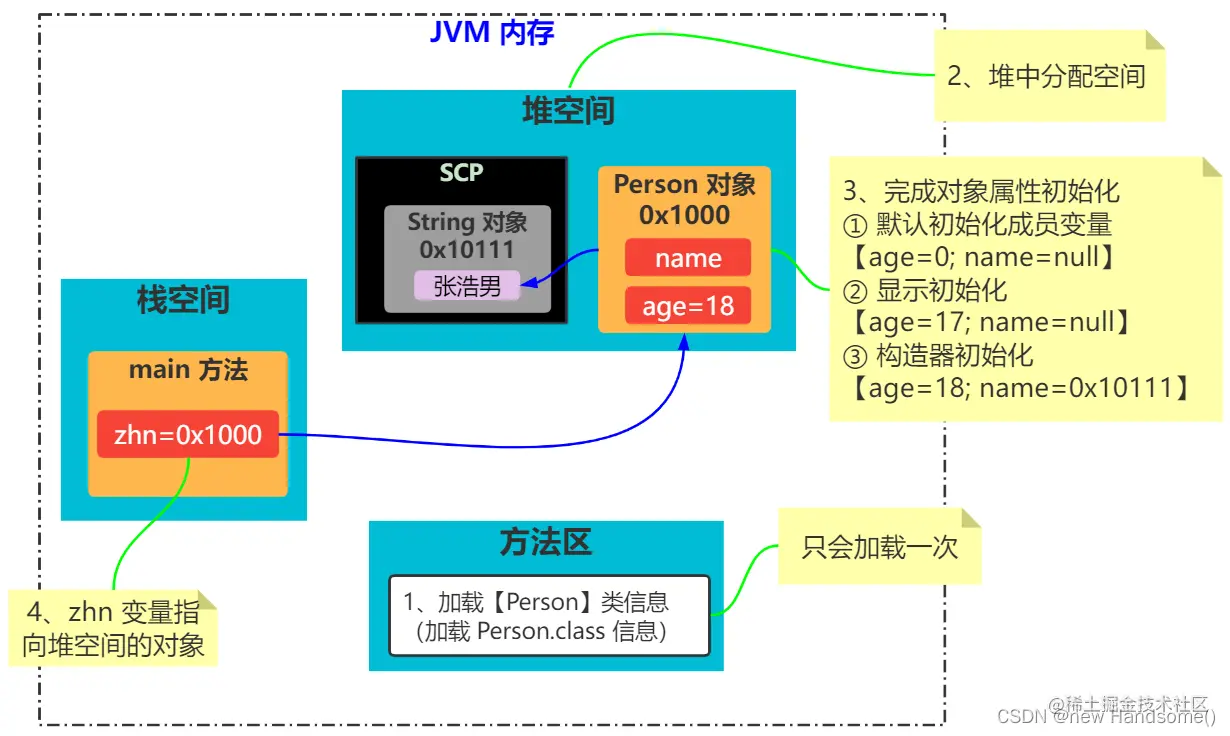 🥤 ④ 对象在堆中的内存地址赋值给 zhn(zhn 指向对象在堆中的地址)