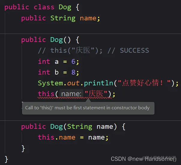🌱 只能在构造方法中用 this 调用其他构造方法