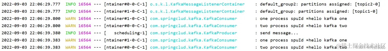 kafkaTwoTemplate.send("topic2", "hello kafka two");