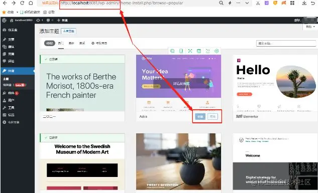 在网页程序安装完毕后,我们可以通过WordPress自带的网页模板对个人网站进行“装修”(外观自定义及内容填充),生成自己喜欢的网站风格。