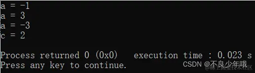 可以看到 c 输出为1,这是因为使用 goto 语句后,直接调到 FOR 标签所在的位置,导致了 for 循环没有执行。