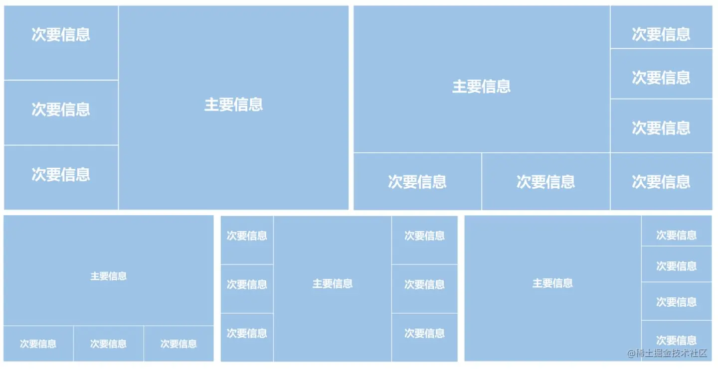 - 主要信息呈现业务的主要逻辑,一般放在显眼位置、用重点元素标识;
