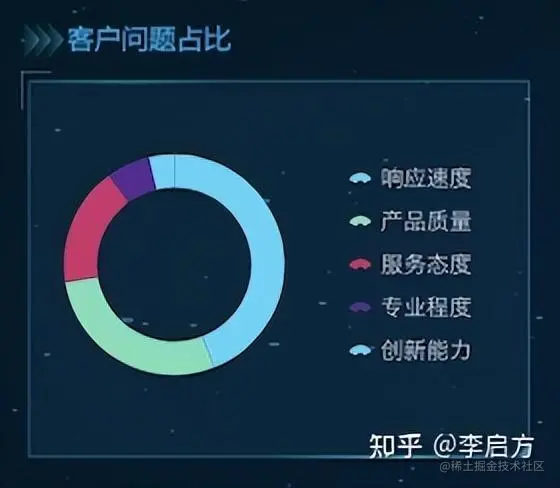 多个对比色则用以显示不同的“客户问题占比”,达到一定的多系列对比效果: