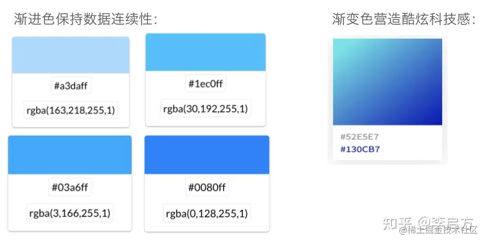 “连续”的效果可以通过渐进的一系列颜色或渐变色体现。