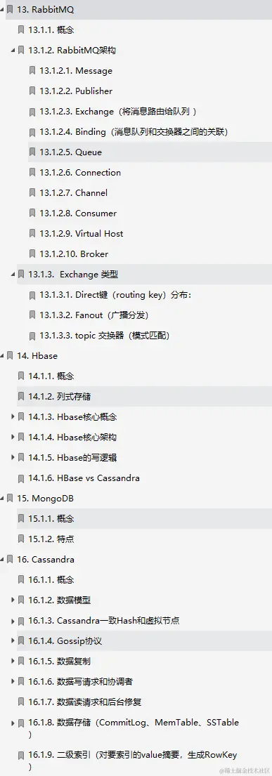 这份手册我看到的时候就感觉很良心,从最基础的内容开始一直到JVM、多线程、Spring全家桶、微服务、网络、消息中间件、数据结构、算法、分布式等等都包含了。并在里面配备了知识点脑图,使读者可以更好地掌握整个知识体系;