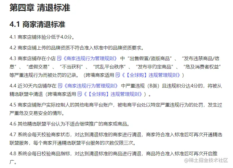 接下来就给大家介绍一下最近最新发的抖音小店精选联盟清退标准: