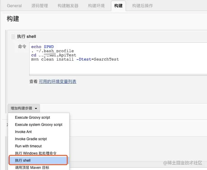 . ~/.bash_profile是为了引入我的环境变量配置cd …ApiTest是为了进入我设置的项目目录下mvn clean install -Dtest=SearchTest目的是为了使用maven制定执行SearchTest\