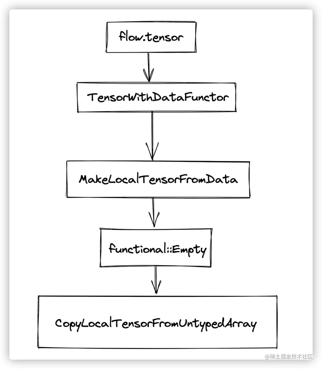 我们以flow.tensor([[1,2,3],[4,5,6]])为例,看一下tensor构造的过程。主要的流程如下: