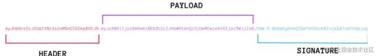 JWT由3部分组成,分别头部header、荷载payload和签名signature。如下图: