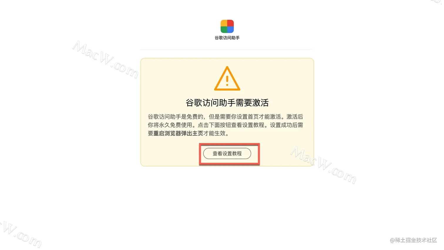 提示谷歌访问助手需要激活,点击查看设置教程