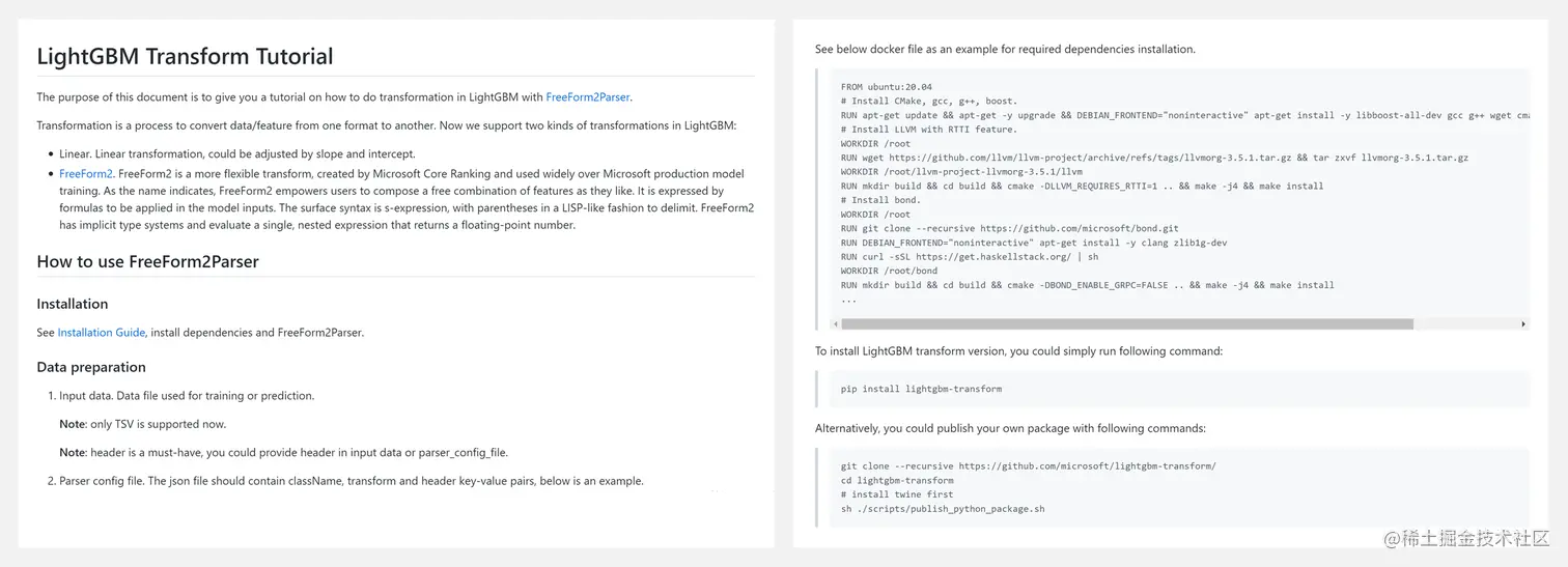 LightGBM Transform 在使用 LightGBM 时提供一种灵活且自动的方式来进行特征转换。与单独的转换相比,这种方式更有效率,也更便于开发和迭代: