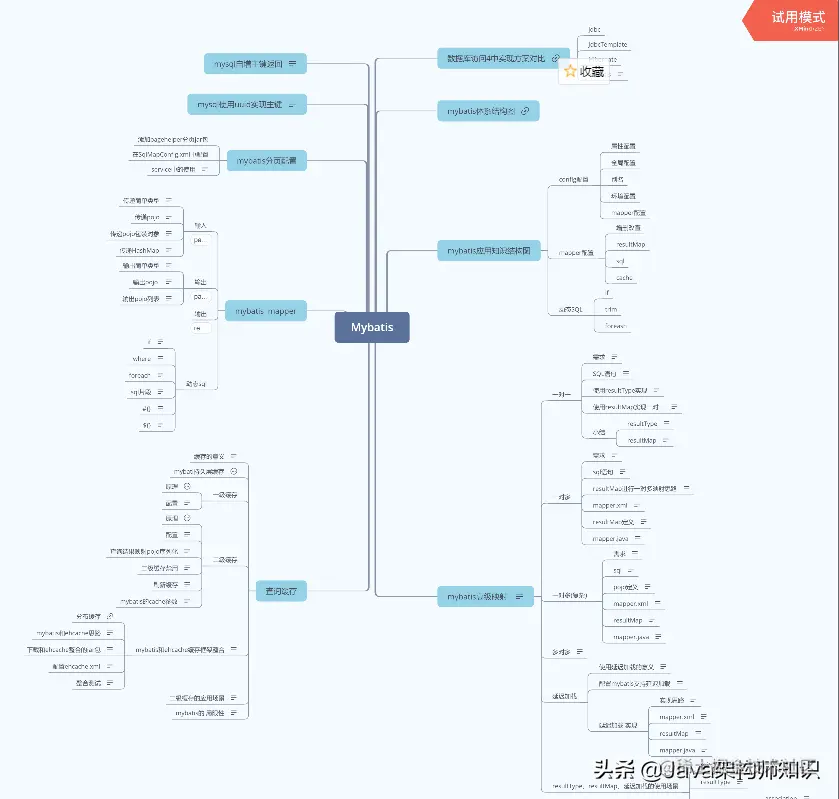 下面这个图是Mybatis的一个思维导图知识点总结,大家需要可以自取。