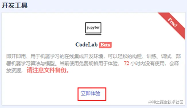 华为云为用户提供了云上的AI开发环境——ModelArts CodeLab,一款云化的jupyterlab,采用的是jupyter社区的jupyterlab 3.2.3版本,能够实现案例内容秒级接入与分享,而且有免费算力,规格可按需切换。