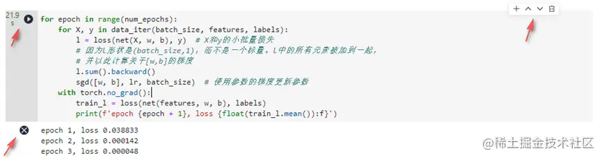 可以在cell左侧点击运行按钮执行代码,执行完成后显示运行时长