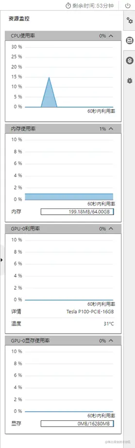 在使用过程中可以通过右边栏的资源监控查看性能消耗: