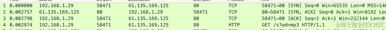 抓包分析 TCP 协议 抓取一个 http 的 get 请求: