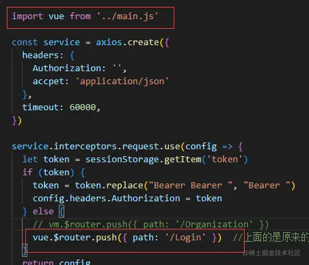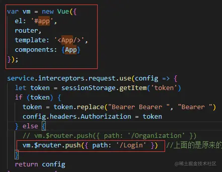 当时我又写了一个的原因是,在调取接口的js文件里,需要判断接口请求头里是否有token,没有就跳转到登录页,而js文件里使用this.$router.push({ path: '/Login' })不起作用,因为this不是vue实例,所以就新建了一个vue实例