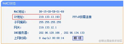 路由器WAN口IP地址(在路由器管理界面 运行状态 页面查看):