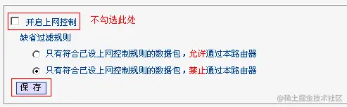 解决办法:关闭上网控制功能再测试。在路由器管理界面点击 上网控制 >> 规则管理,不勾选 开启上网控制,点击 保存,如下图: