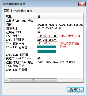 1、确认服务器网络参数