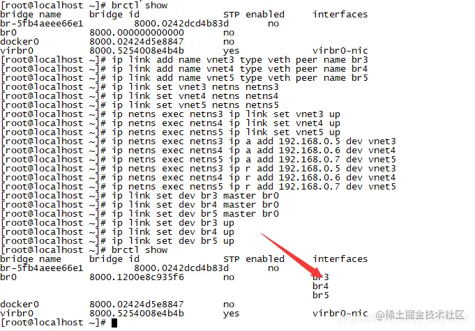 上一个是仅仅两个虚拟网络的情况下,那么如果多了起来,再去两两进行配对就明显不太可行了。所以引入了网桥bridge这个技术。将网络全都与bridge连通,那么所有的两两之间的网络就都可以通信了。